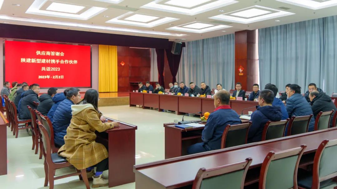 为感谢各供应商过去一年的工作,促进与各供应商来年的合作关系,增进了解与信任,2月2日,陕建新型建材公司举办供应商答谢会,会议由陕建产投集团副总经理、公司党支部书记、董事长佀伟主持,公司全体领导班子、各分管领导以及各供应商出席会议。