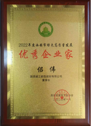 陕西建工新型建材有限公司荣获“2022年度西安市绿色低碳建材优秀生产企业”“2022年度西安市建筑业绿色高质量发展先进企业”荣誉称号;