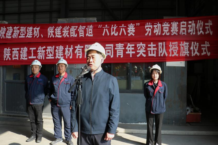 启动仪式由陕建新型建材有限公司党支部副书记、工会主席任晓丽主持,公司党支部书记、董事长佀伟宣布“六比六赛”劳动竞赛正式启动并讲话。