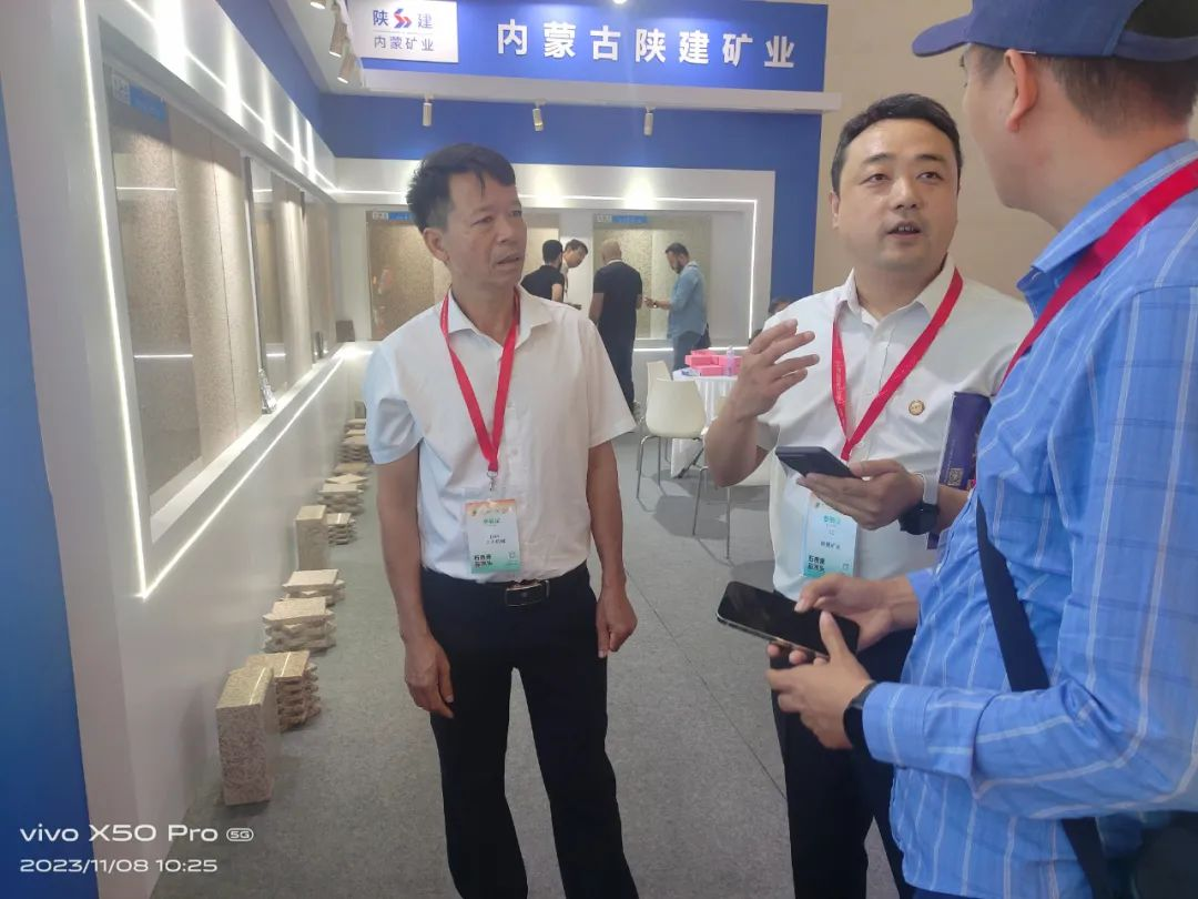 陕建产投集团董事长付超锋一行在参加石材展期间,专门莅临公司展台,详细了解了参展、布展及销售情况,鼓励矿业公司要利用好展会这个平台,广开眼界、广长见识、广交朋友,积极向国内外客商推介好矿业公司产品。同时,要求陕建矿业公司要坚持以市场为导向,精益求精打造产品、无微不至做强服务,切实做到选者放心、用者安心。