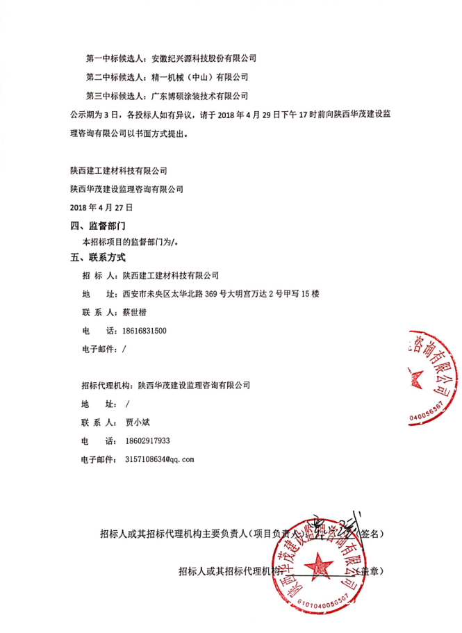陕西建工建材科技有限公司涂装板生产线项目设备采购中标公示