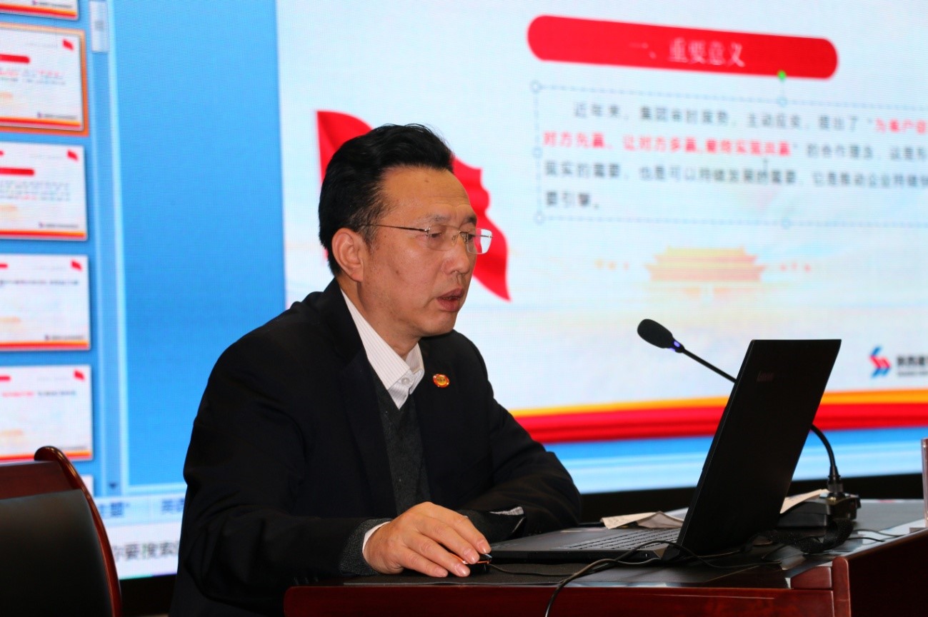 刘新龙致辞,他首先介绍了陕建(西咸新区)建筑产业基地建设和发展以及新型建材公司的历史和所取得的成绩,并表示新型建材愿为大家搭建更大、更好的施展平台,让每一名员工不仅成为企业建设的参与者,更成为企业发展的推动者。同时也希望通过此次活动,激发每一名员工“弘扬爱国奋斗精神,建功立业新时代”的创新豪情、创造激情以及积极践行合作共赢理念的高涨热情,切实将思想和行动统一到陕建和投资集团的各项决策部署上来,在推进企业改革发展、高质量发展的伟大事业中贡献聪明才智。
