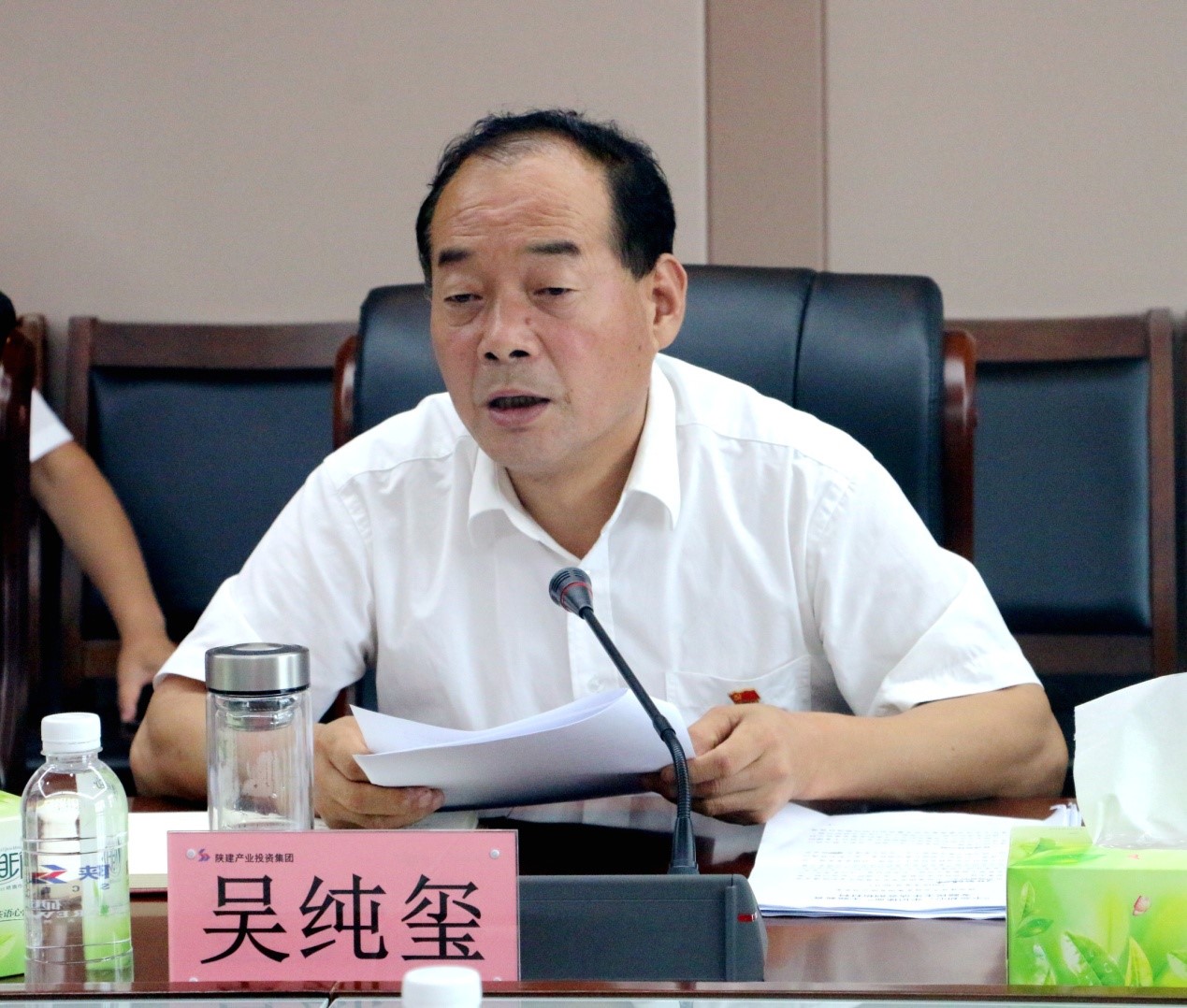陕建集团主题教育第一督导组组长,集团党委书记、董事长张义光作点评讲话。督导组成员、陕建集团党政办公室主任苏健,督导组成员、陕建集团后勤事务管理中心副主任任天峰到会指导。陕建董事,产投集团党委书记、董事长吴纯玺主持会议。