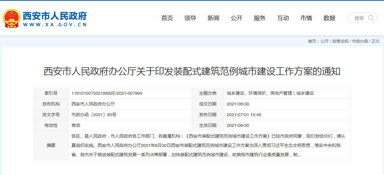 西安市装配式建筑范例城市建设工作方案