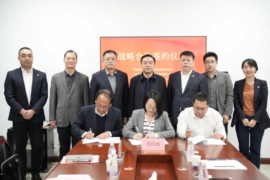 座谈会上,三方分别介绍了各自企业产业布局和发展成果等情况。随后,陕西建筑产业投资集团副总经理卢远瞩、平凉市基础产业投资集团党委委员、副总经理马寅生、陕建十四建有限公司市场开发部部长郭亮代表三方签约。