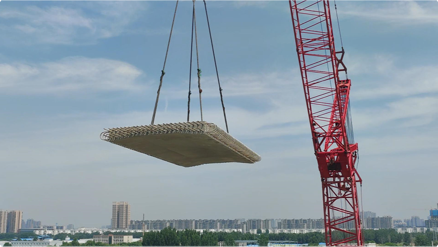 “相较于传统的钢桥面板,预制桥面板解决了易疲劳开裂以及沥青混凝土铺装层使用寿命短、车辙、壅包等典型病害问题。车间预制生产方式能够减少现场施工作业人员,缩短现场施工工期,在节能节水、低碳环保方面具有明显优势。”陕建产投集团装配式建筑技术研究院副院长王芸爽说。
