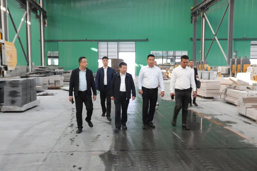 付超锋带队调研麻城市花岗岩石材产业,考察石材加工切割工序工艺,实地查看大板车间、异形车间等区域,详细了解产业规划、生产研发等情况。随后,付超锋一行到花岗岩矿山实地参观矿山作业情况,深入调查研究矿山基础设施、标准化园区、物流运输、石材项目推进等工作。