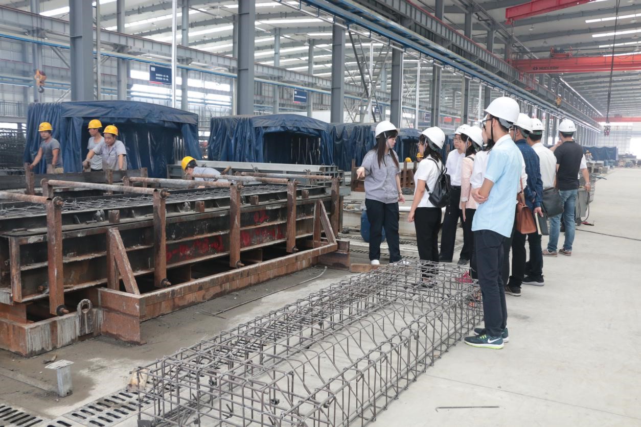 新员工在工作人员的带领下,参观了陕建(秦汉新城)建筑产业基地PC车间和使用装配整体式框架结构体系建造的办公楼、宿舍楼项目。