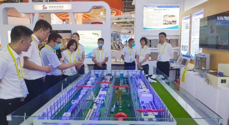 在位于T6智能制造馆的陕西建工展区,两条生产线模型引起了现场“围观”,而这正是陕建产业投资集团有限公司(以下简称陕建产投集团)展出的装配式建筑生产线和硅酸钙板系列产品的生产线,通过模型将这两条生产线搬进了丝博会的会场。